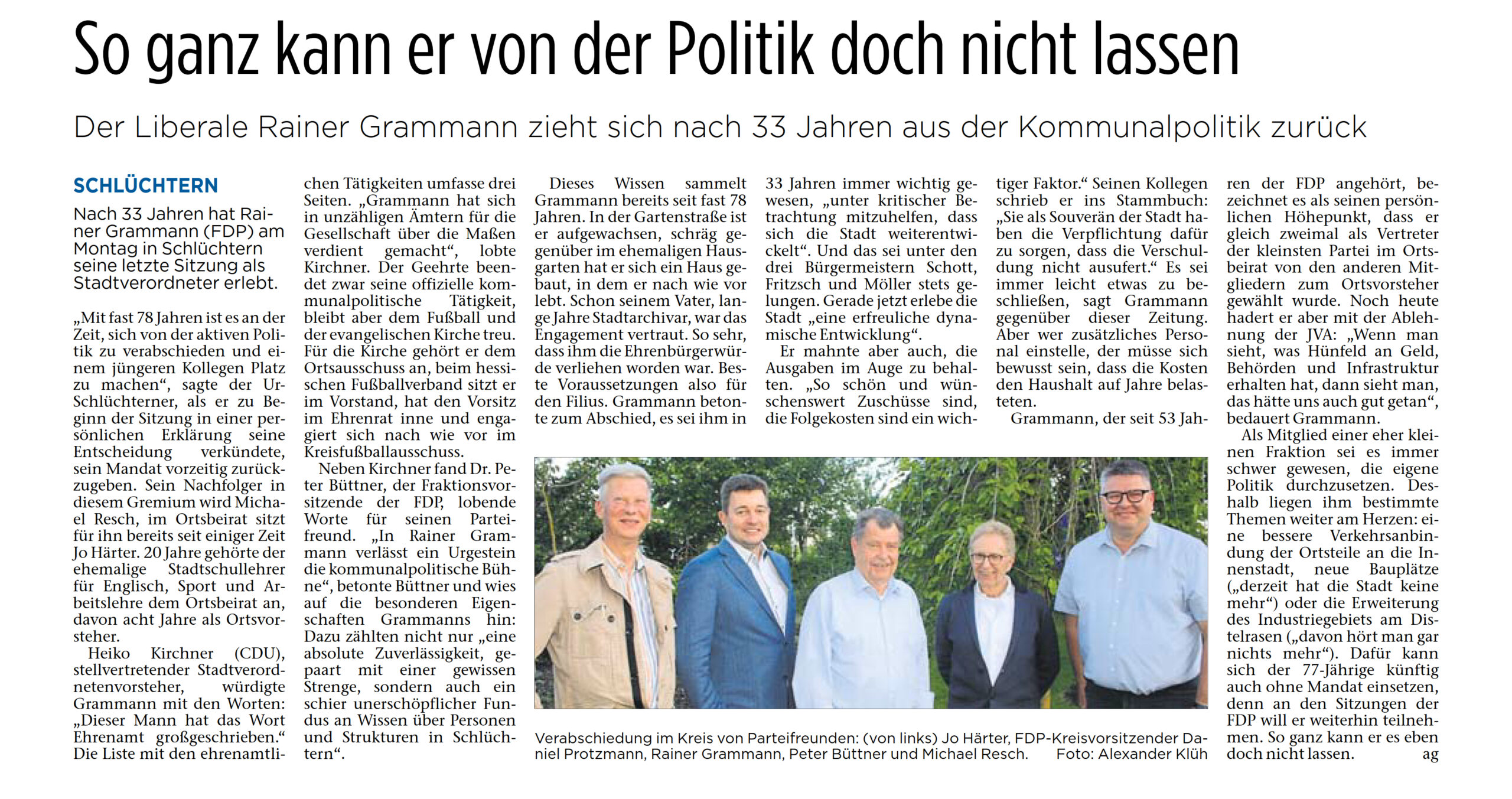 Der FDP Ortsverband Schlüchtern-Sinntal dankt für das jahrzehntelange Engagement und wünscht alles Gute!